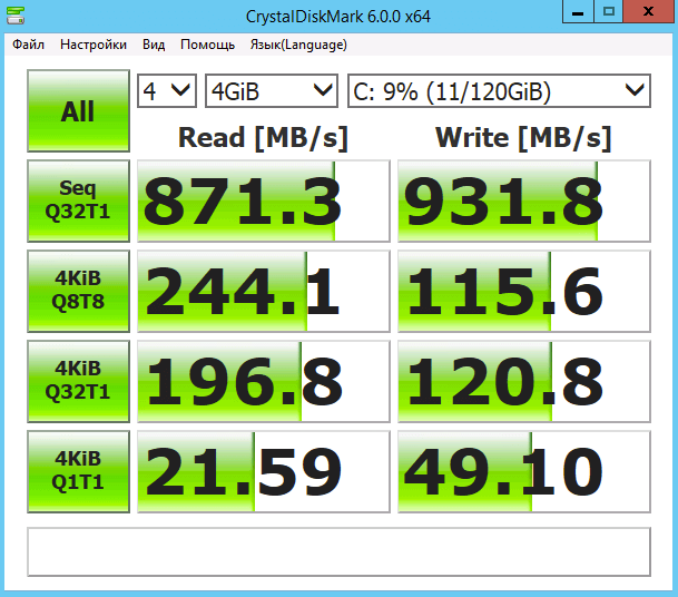 - 4K QD32T1 (случайное чтение/запись блоков по 4Kб с глубиной 32 в 1 поток)
