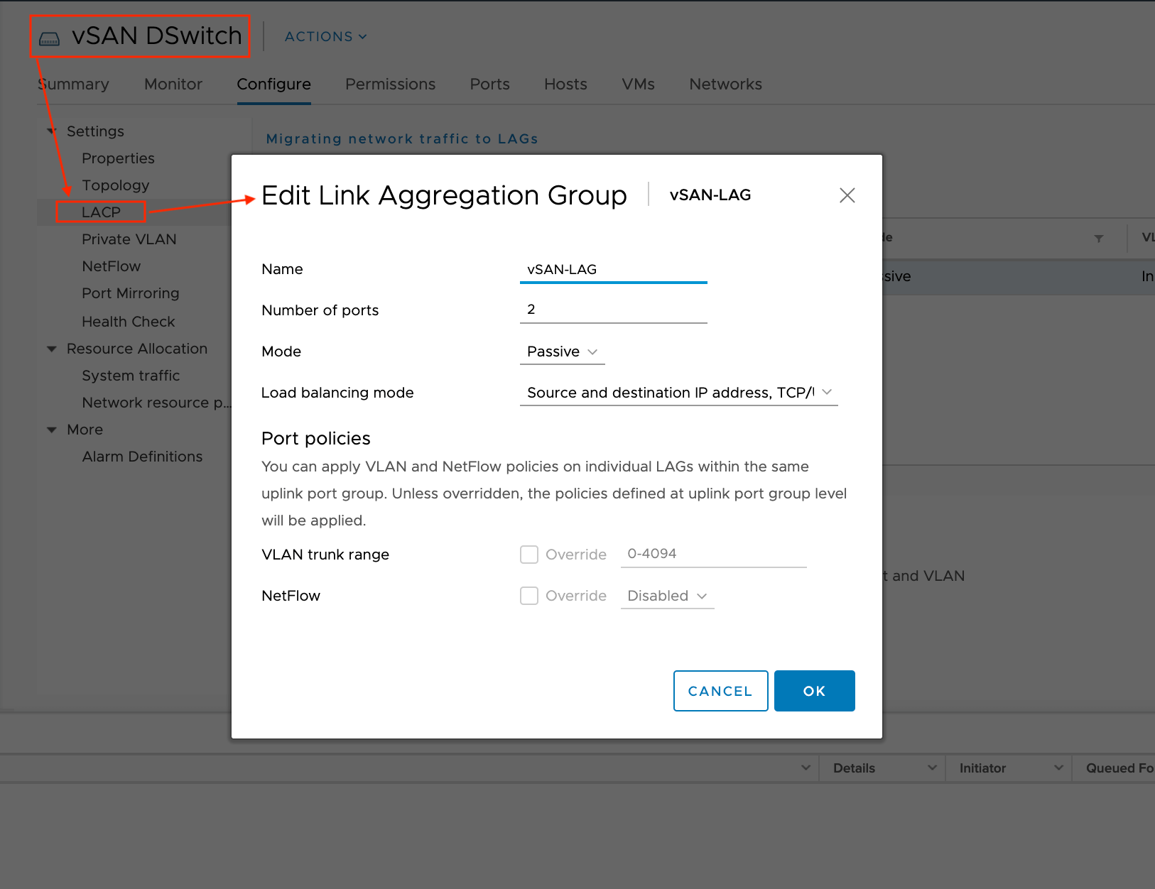 Выполняем настройку групп агрегации каналов (Link Aggregation Groups) с использованием LACP на распределённом коммутаторе vSphere (vSphere Distributed Switch)